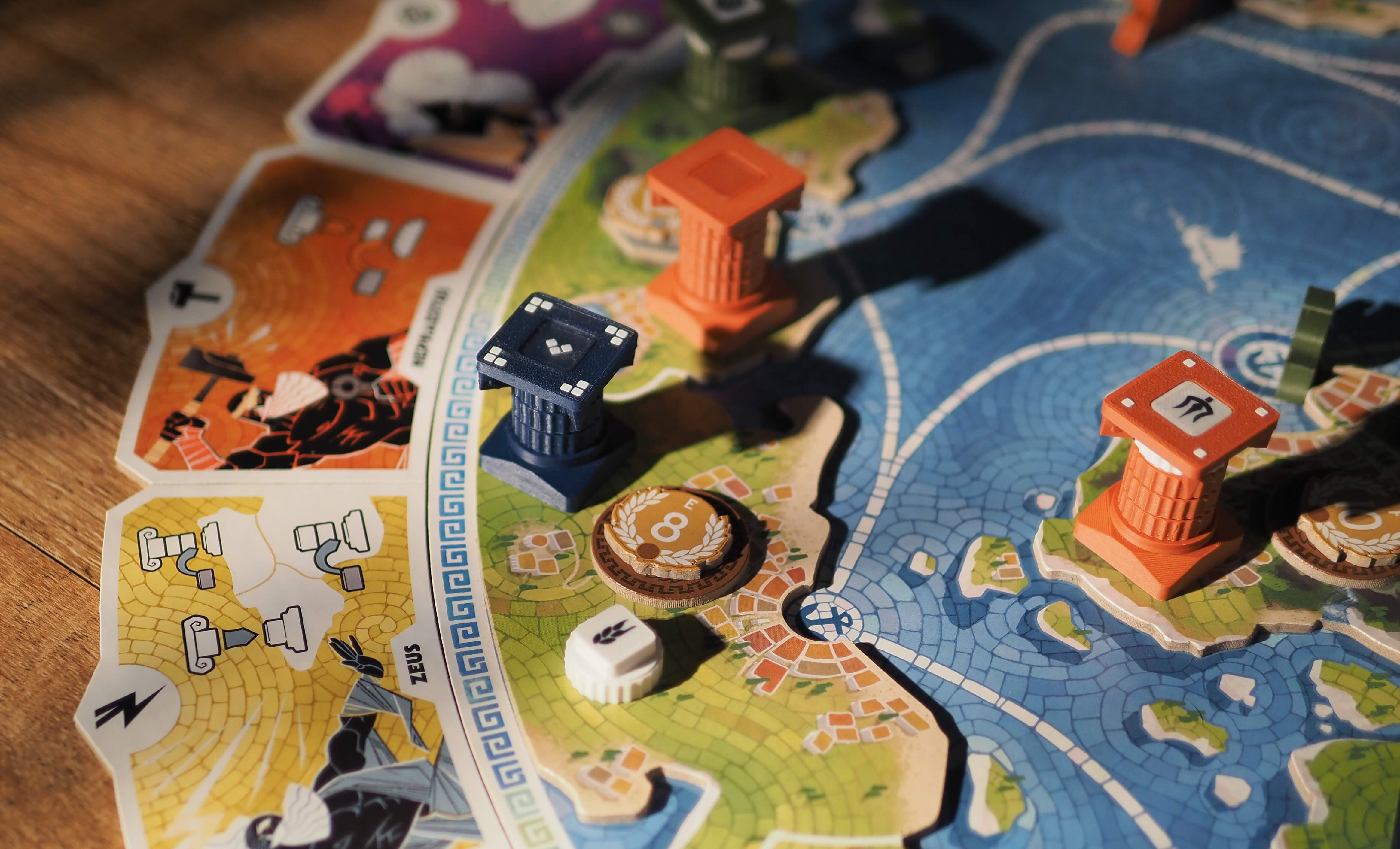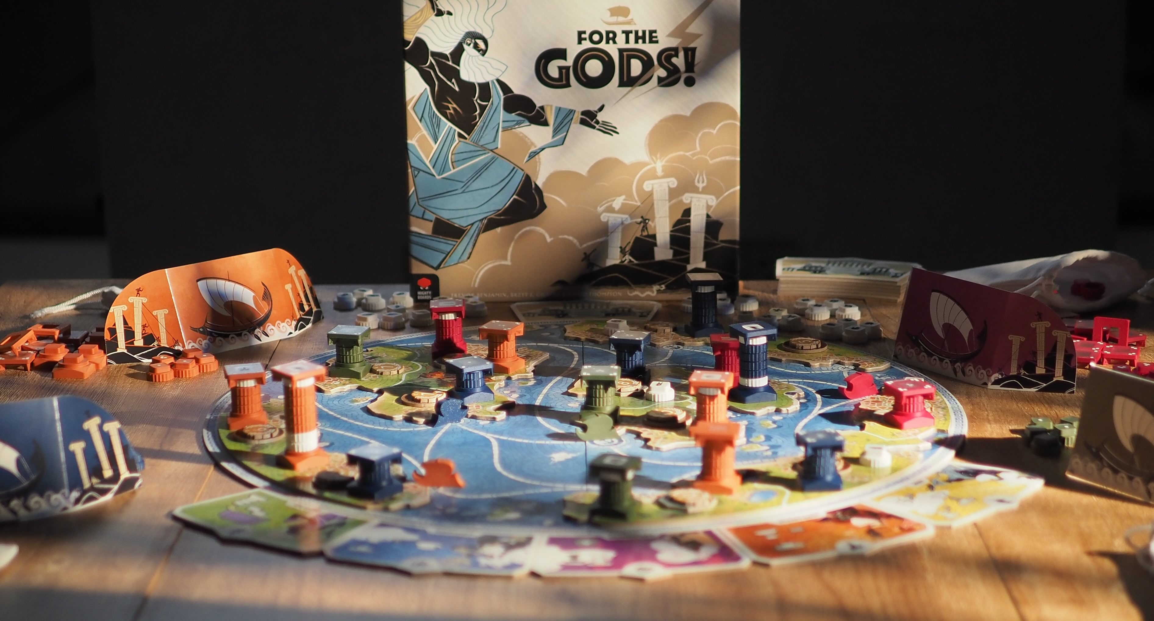 For the Gods! is a strategic area control game in which every stone shapes your path to victory. The rules are simple: Sail the seas to establish new towers or strengthen existing ones. Along the way, collect God stones and unleash their divine powers at the right moment. With twelve unique God powers, each game offers fresh strategies and dynamic gameplay, ensuring high variability.